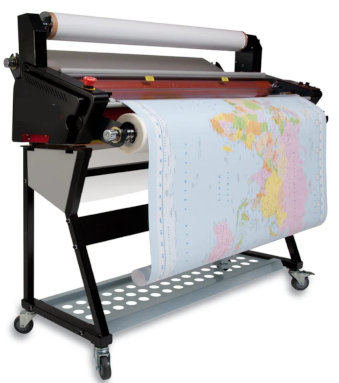 Такая техника использует для ламинирования пленку в рулонах. Лист любого формата — вплоть до А0 — запечатывается между пластиком, что так актуально для типографий, офисов, центров широкоформатной печати, а также агентств, работающих с наружной рекламой. Иногда пленки также применяют для ламинации напольных стройматериалов.