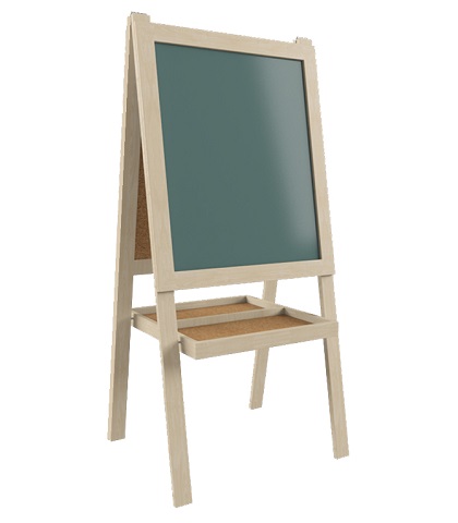 Доска имеет две рабочие поверхности, одна — магнитно-меловая зелёного цвета, другая — белая магнитно-маркерная.
