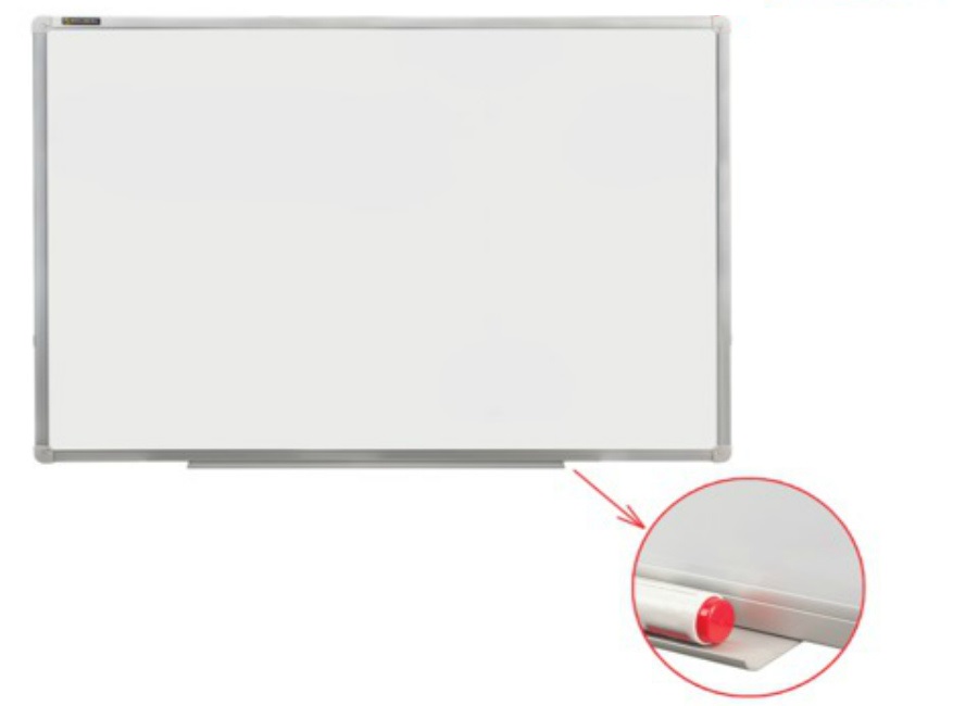 По краям доски расположена алюминиевая рама с пластиковыми углами, обеспечивающими безопасность при использовании. Для удаления записей с панели рекомендуется применять губку. Конструкция монтируется на стену в горизонтальном или вертикальном положении с помощью крепежа. Дополнительно в комплект входит лоток для хранения принадлежностей. Перед началом эксплуатации с рабочей зоны необходимо снять защитную пленку.