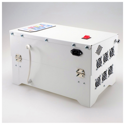 12 встроенных малошумных вентиляторов эффективно отводят тепло от ламп. В предыдущих моделях тепло от ламп не выводилось, что ограничивало работу по времени из-за необходимости в перерыве для остывания ламп. Особенно пауза необходима при использовании синих ламп, они выдают много тепла. Многие производители ставят на ЭК закрытого типа белые лампы, которые греются не так сильно.
