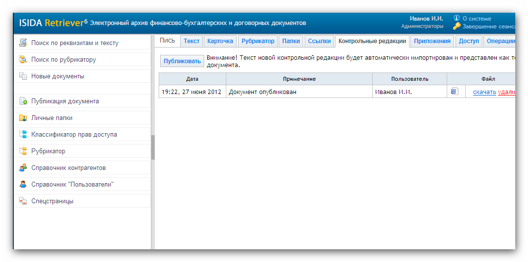 Поиск по реквизитам и тексту документа |