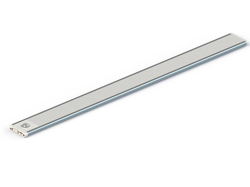 Плоский элегантный светодиодный светильник 30 см с датчиком движения, толщина всего 9мм. Возможность крепления на 2 магнитных держателя из комплекта. Удобно снимается для подзарядки аккумулятора через MicroUSB вход. Имеется переключатель режимов работы: ON/OFF/AUTO. А режиме AUTO светильник включается при срабатывании датчика на движение и выключается через 30 секунд после завершения движения. Режиме ON включается постоянное освещение. В режиме постоянного освещения способен работать до 2,5 часов без подзарядки. Рекомендуется в качестве подсветки для полок, шкафов, ящиков, проходных зон и в качестве аварийного освещения. Корпус выполнен из алюминиевого сплава.