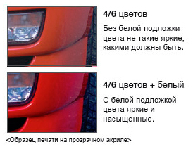 Одновременная печать цветом и белыми чернилами