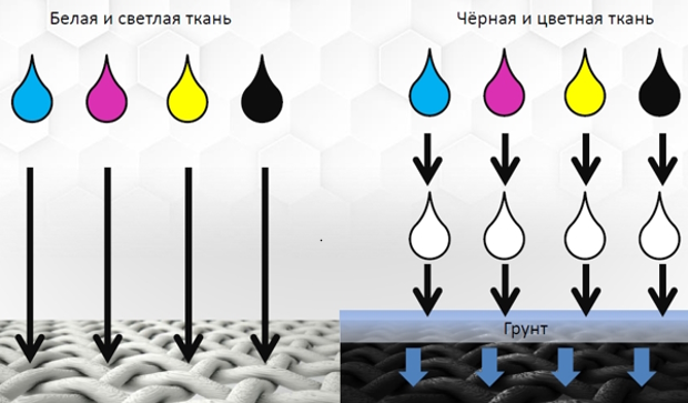 Как и в случае с белым текстилем, лучше всего изображение ложится на гладкие ткани.