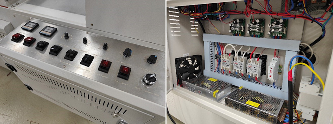 Шейкер-сушка BH2 спроектирована и произведена с учетом всех потребностей профессионалов в сфере DTF-печати. Одними из важнейших характеристик оборудования подобного класса являются хорошая ремонтопригодность и безотказность работы. Открывающиеся дверки и лючки позволяют легко проводить обслуживание и ремонт шейкеров. Электронные органы управления размещены в отдельном боксе для минимизации влияния высокой температуры и для легкого доступа к ним. В шейкерах установлены надежные и простые электронные компоненты - нет уникальных и дорогих комплектующих, таких, например, как панель управления с сенсорным ЖК-дисплеем. Такая система управления достаточно дорогая и уникальная. В случае ее выхода из строя станок отремонтировать оперативно невозможно. Также в работе она удобна не каждому, так как все управление интегрировано в одну систему и быстро поменять любые настройки достаточно сложно. Все это усугубляется торможением работы и периодическими зависаниями, преодолеваются которые только выключением самой машины, что приводит к остановке рабочего процесса и появлению брака.