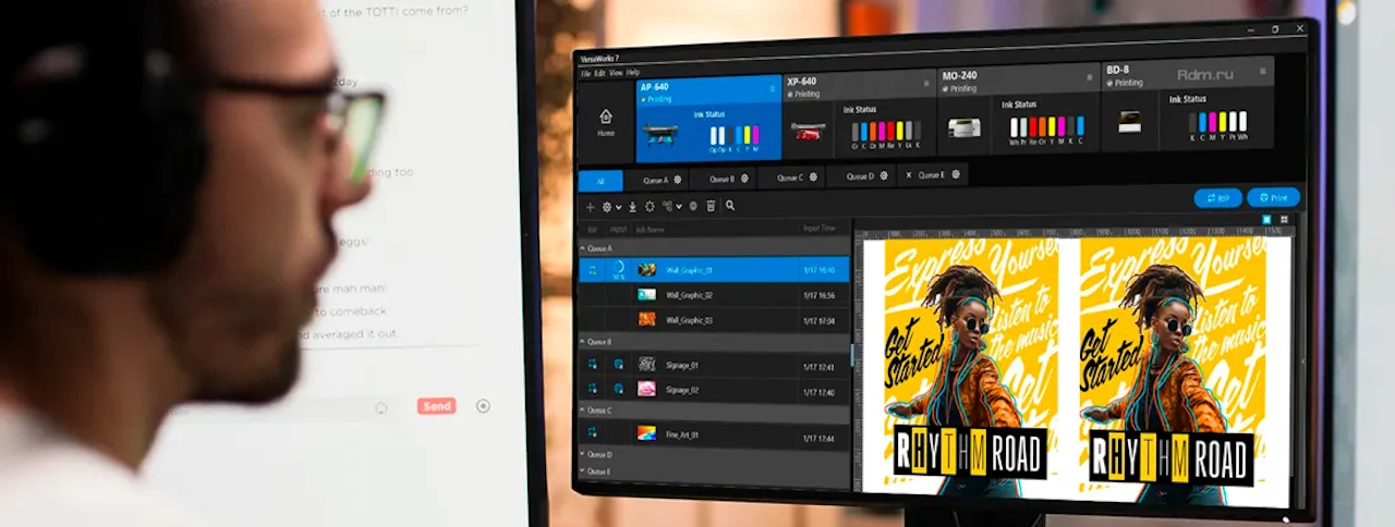 Для пользователей, которым требуется еще больший контроль над настройками и возможностями вывода данных на принтер BN2-30, в комплекте с принтером также поставляется русифицированное программное обеспечение RIP VersaWorks 7 для вывода данных. Простой в использовании и мощный RIP VersaWorks 7 предлагает функции и инструменты, которые оптимизируют качество и процессы печати, связанные с принтером, чернилами и носителями. VersaWorks также упрощает настройку макетов для печати, из векторного макета может создавать линии резки, и поставляется со встроенными инструментами управления цветом, которые упрощают воспроизведение определенных цветов, чем когда-либо ранее.