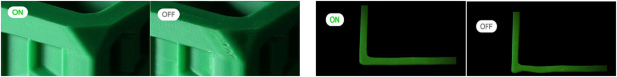 H2S использует возможности серводвигателя на экструдере и датчики вихревых токов высокого разрешения на сопле для точного контроля экструзии путем измерения давления в сопле и калибровки параметров полиамида для каждой нити, что повышает гладкость поверхности и остроту краев.