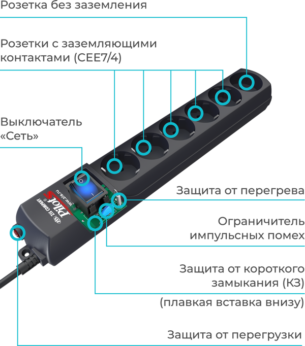 Схема защиты сетевого фильтра Pilot S Graphite включает в себя: