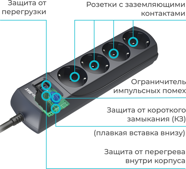 Pilot m-MAX защищает от импульсных помех, перегрузки и короткого замыкания.