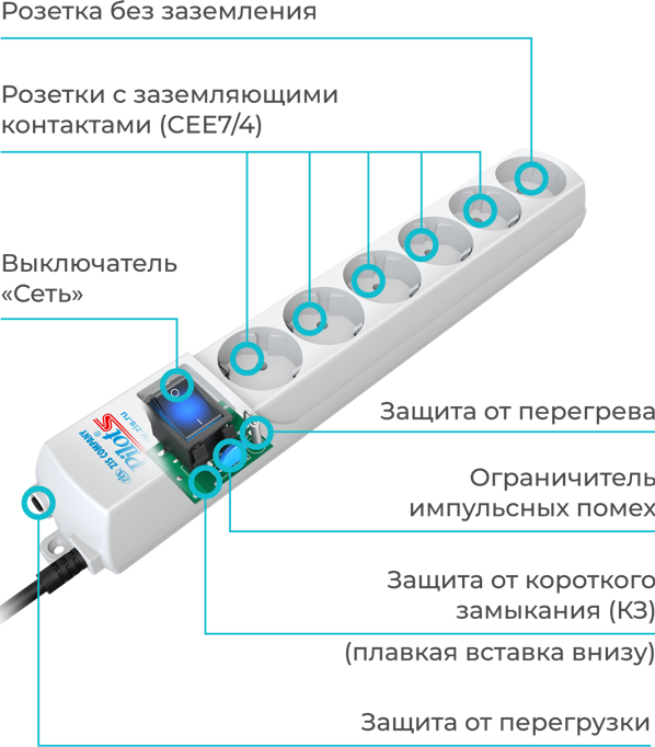 Схема защиты сетевого фильтра Pilot S включает в себя:
