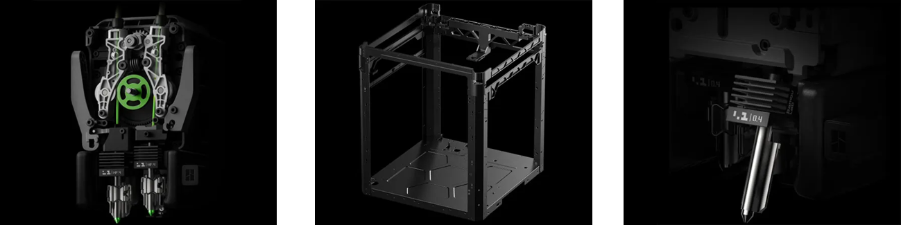 Инновационная система калибровки Bambu Lab H2D с двумя печатающими соплами оснащена передовой технологией автоматического определения параметров, которая гарантирует безупречную синхронизацию работы экструдеров. Интеллектуальные бесконтактные датчики определения положения сопла обеспечивают быструю и надёжную калибровку, выравнивая оба сопла перед каждым циклом печати. Бесконтактные измерения надёжны и не зависят от загрязнения сопла.