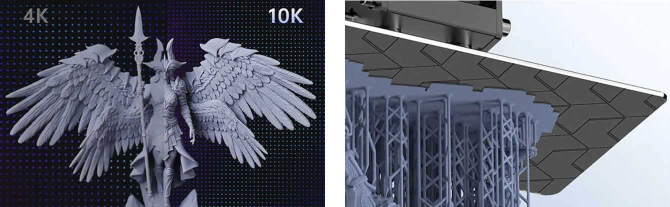 Anycubic Photon Mono 4 может похвастаться увеличением точности печати на 105%, по сравнению с предыдущей моделью. 7-дюймовый дисплей с разрешением 10К (9024х5120), где каждый пиксель равен 17х17 мкм, позволяет печатать с высокой детализацией.