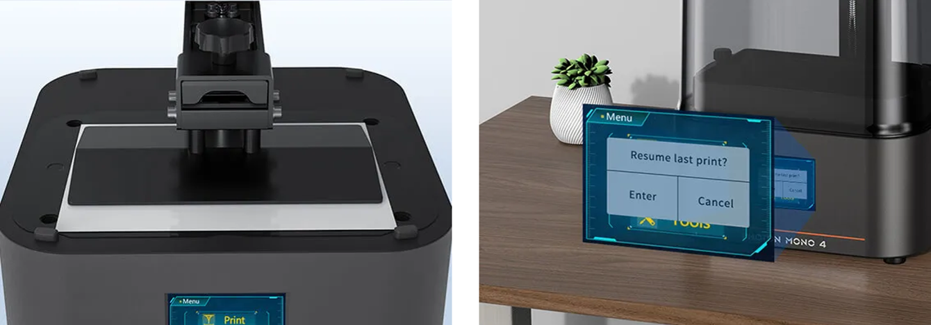 Автосохранение печати — это важная функция 3D-принтера Anycubic Photon Mono 4, которая позволяет сохранить прогресс печати при внезапном отключении электроэнергии. Когда подача электричества прекращается, принтер автоматически останавливает процесс печати и сохраняет текущие параметры. После восстановления электропитания устройство продолжает работу с того момента, где она была прервана.