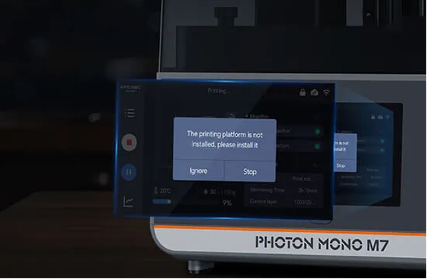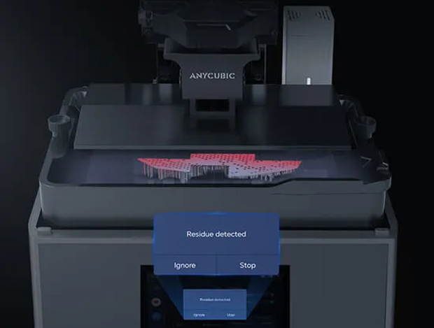 Anycubic Photon Mono M7 отслеживает наличие твердых частиц в фотополимере, своевременно оповещая пользователя об их обнаружении. Это позволяет избежать повреждения экрана.