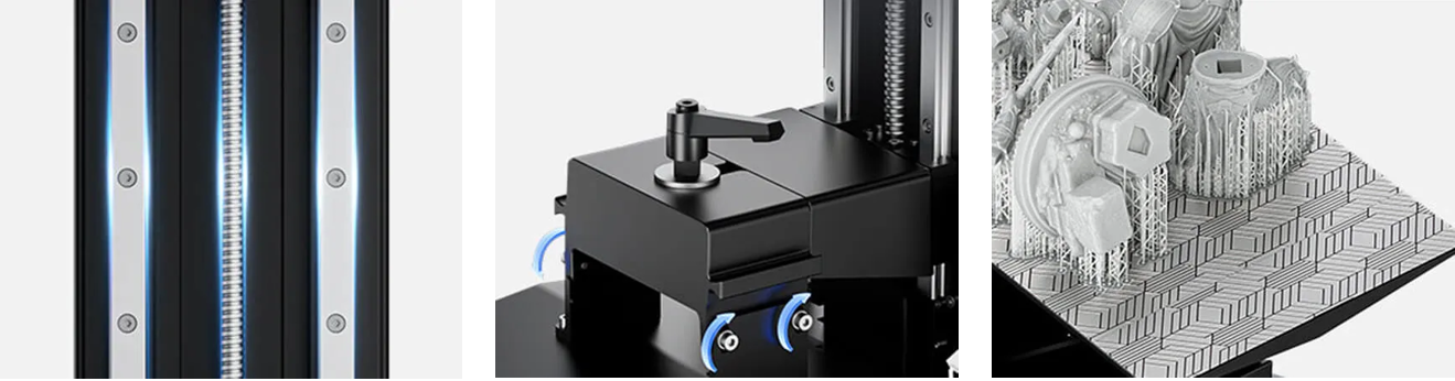 Благодаря мощному источнику света и оптимизированным алгоритмам печати, ELEGOO Jupiter SE 6K способен печатать слои толщиной до 0.01-0.2 мм со скоростью до 1.5-2 секунды на слой, значительно сокращая время печати.