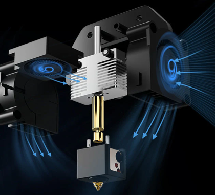Двухступенчатый прямой экструдер имеет передаточное число 5.2:1 и усиленное передаточное усилие для равномерной экструзии нити и достаточной производительности.