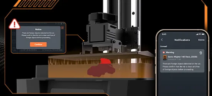 Резкий запах смолы в жилом помещении может вызывать неприятное ощущение. Sonic Mighty Revo 14K оснащен воздухоочистителем и встроенным вытяжным вентилятором, что обеспечивает более комфортную эксплуатацию. Очиститель воздуха адсорбирует пары смолы непосредственно в корпусе принтера, обеспечивая чистоту рабочего пространства и улучшая общее качество печати.
