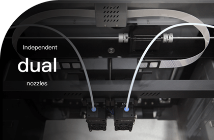 Позволяют печатать двумя материалами одновременно, создавать растворимые поддержки, поддерживает режимы копирования, зеркальной и резервной печати, что расширяет возможности для сложных проектов и экономит время.