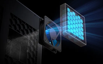 - Усовершенствованная система охлаждения с тремя вентиляторами (хотэнд, модель, камера) и динамической балансировкой вентиляторов для снижения вибраций. Тихий режим с уровнем шума до 45 дБ.