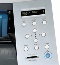 Новая LCD-панель размещена на лицевой панели плоттера для легкого просмотра и навигации в меню. Пульт управления GX-24 спереди имеет регулятор давления ножа удобства ручной резки. Прижимные ролики, которыми оснащен GX-24, сконструированы таким образом, чтобы всегда распрямлять материал во время резки. При необходимости для GX-24 поставляется напольная подставка. |