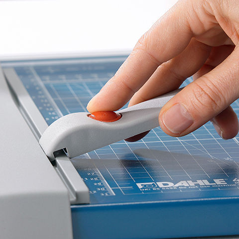 После недолгих колебаний купил для работы именно такой Dahle 446. Превосходный роликовый механизм позволяет плавно нарезать бумагу, не прилагая особых физических усилий. Благодаря разметке и прижимной планке можно очень точно позиционировать исходные листы под любым углом, после чего производить нарезку. Хочу отметить полнейшую безопасность, которую обеспечивает конструкция картриджа, где находится режущий элемент. Что говорить, отличный резак во всех аспектах!