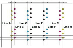 Количество печатающих головок на одну краску кратно увеличивает возможности быстрой печати. Так, при установке двух головок на каждый цвет мы получаем в два раза больший участок запечатки за один проход каретки.