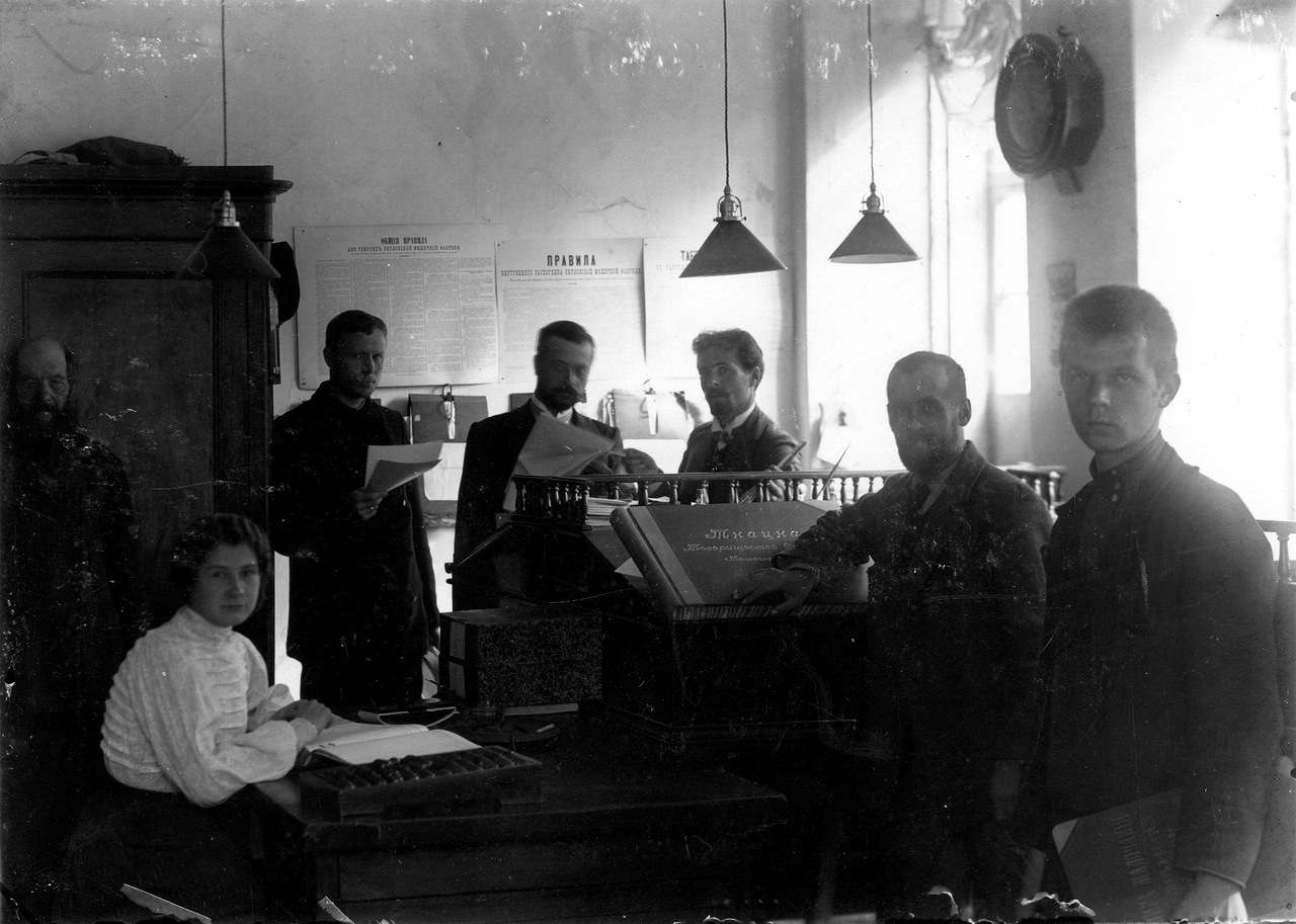 Контора Окуловской мешочной фабрики, 1905. | Отделение телеграфа в Иркутске, 1925. |